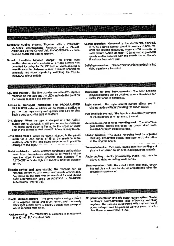 Sony VO-5800PS - Detailed Operational Features; Editing and Transition Control; Tape Management and Search; Signal and Control Systems