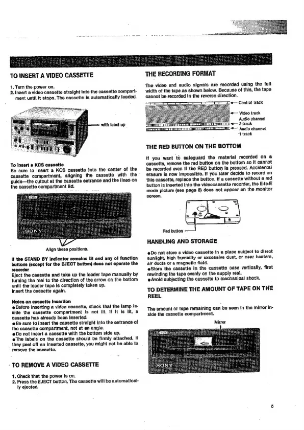 Sony VO-5800PS - Cassette Handling and Recording Basics; Inserting and Removing Cassettes; Recording Format and Protection; Tape Handling and Storage