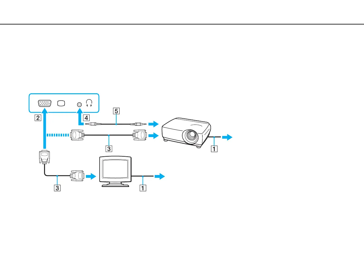 1 Plug the power cord (1) of your external display or the projector into an AC outlet.