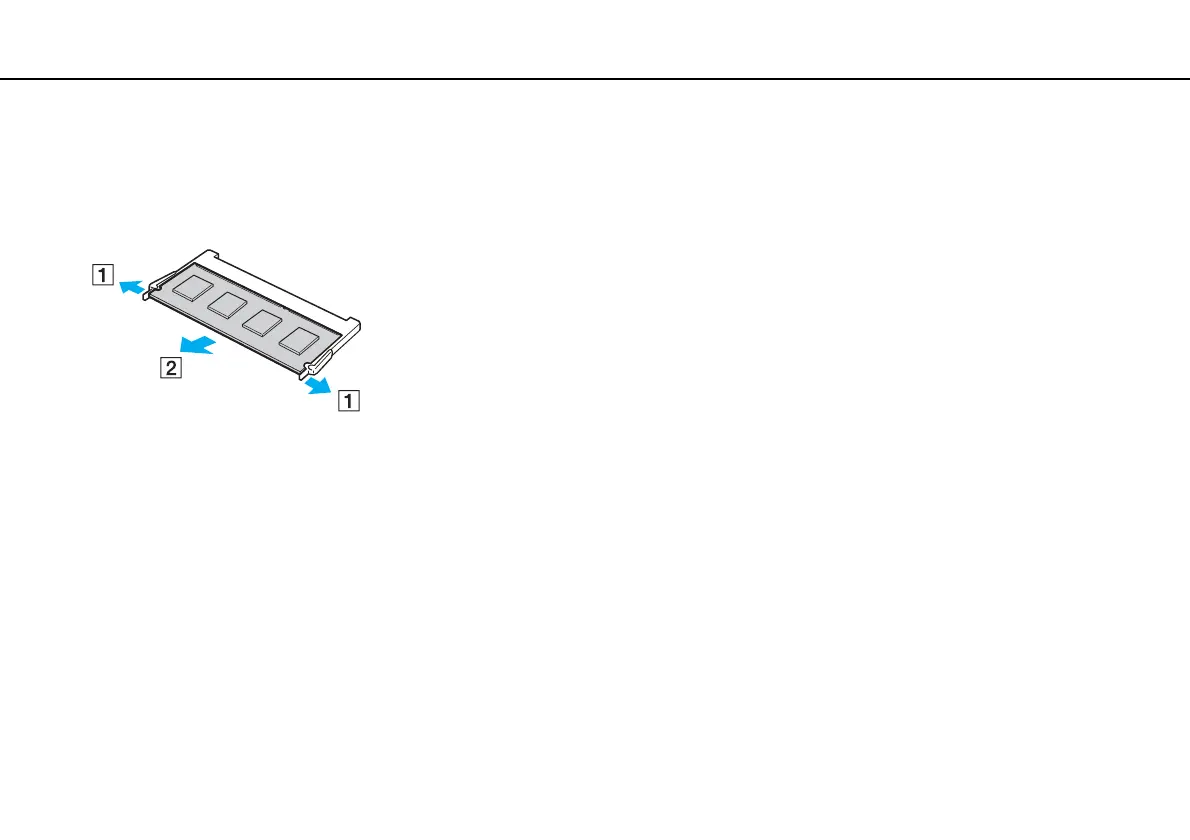 ❑ Make sure that the memory module tilts up and then pull it out in the direction of the arrow (2).