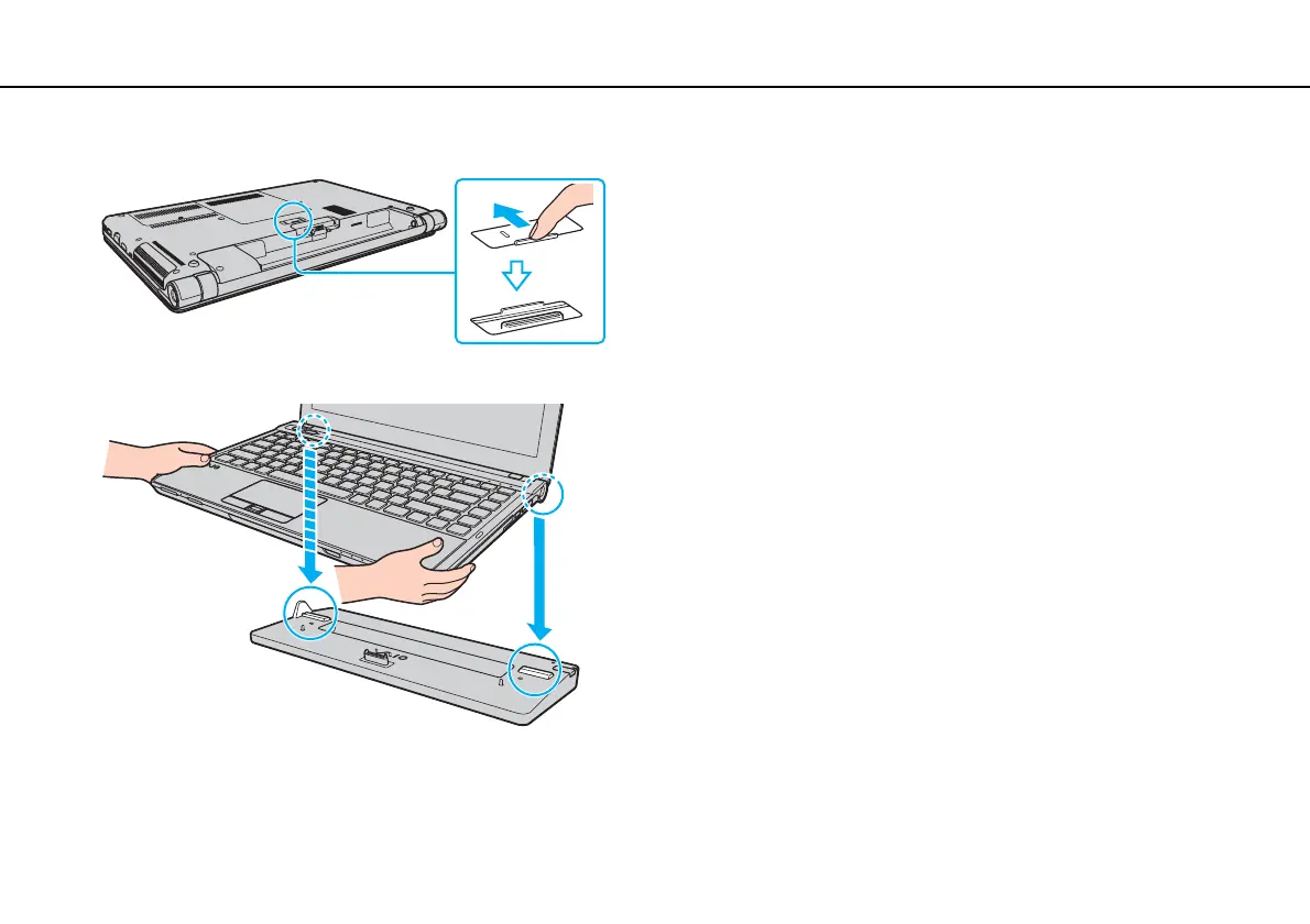 5 Align the rear bottom corners of the computer with the guides on the docking station.