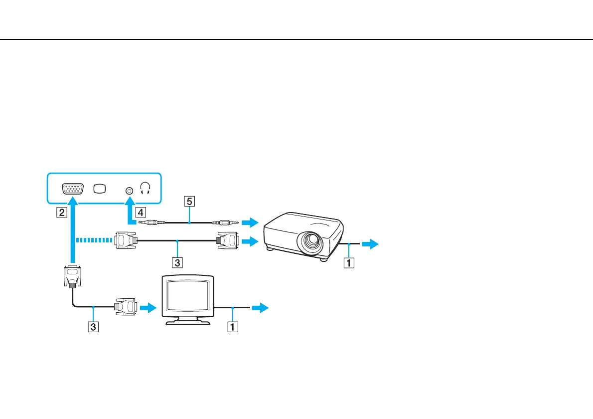 If necessary, connect the headphones jack on the projector and the headphones jack (4) i on the computer with a speaker cable (5).
