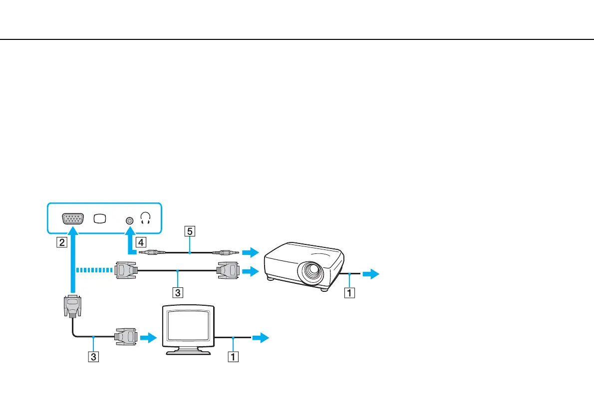 1 Plug the power cord (1) of your external display or the projector into an AC outlet.