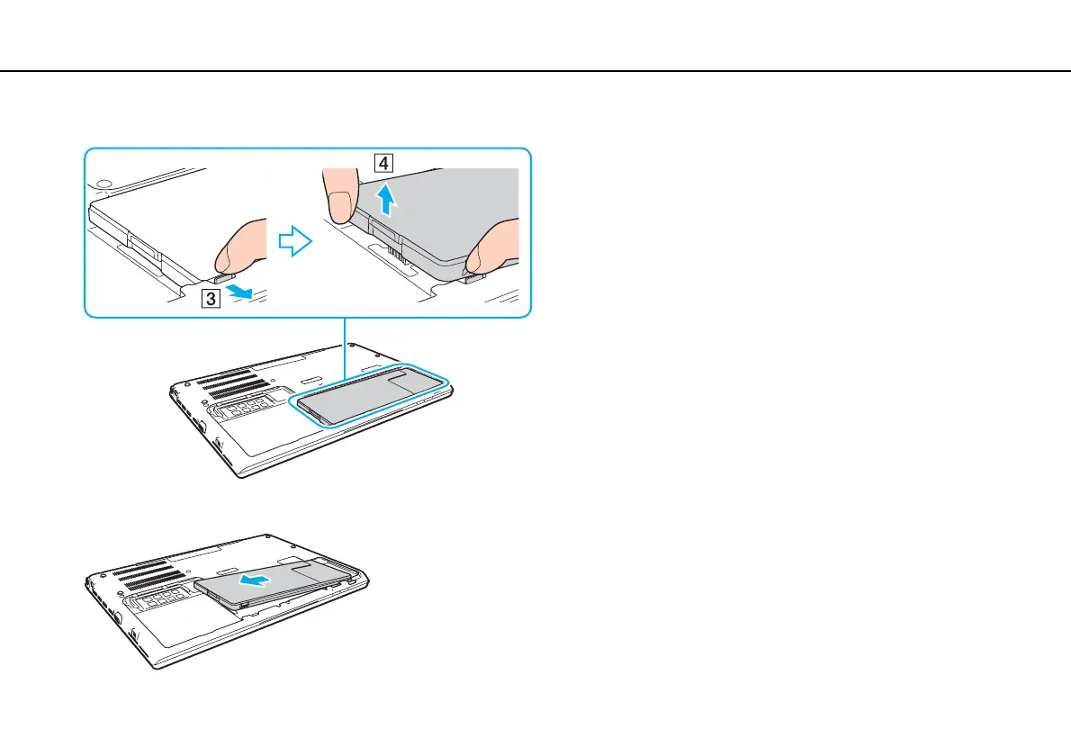 3 Pull and hold the tab in the direction of the arrow (3) and pull the battery pack in the direction of the arrow (4).
