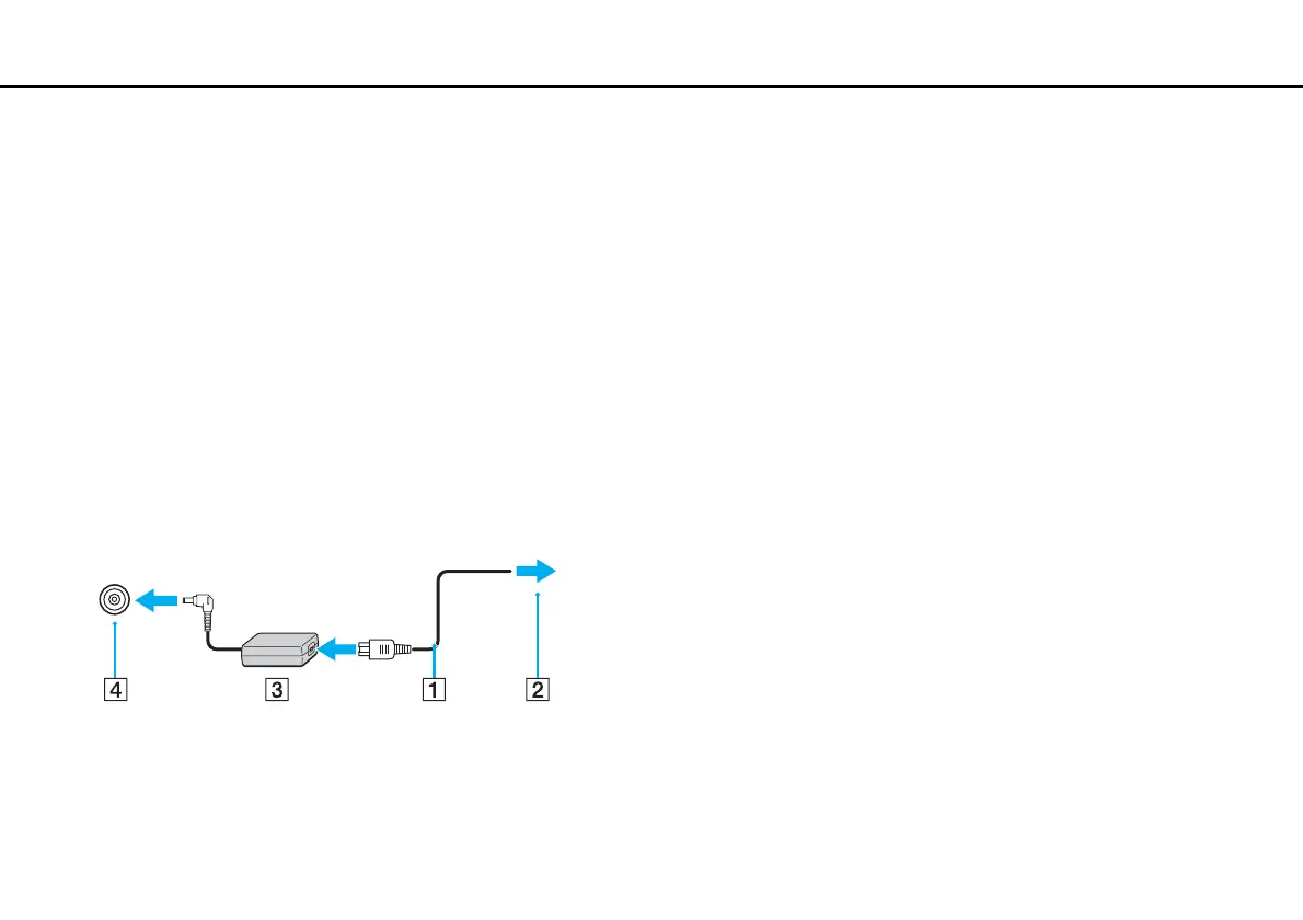 2 Plug the other end of the power cord into an AC outlet (2).