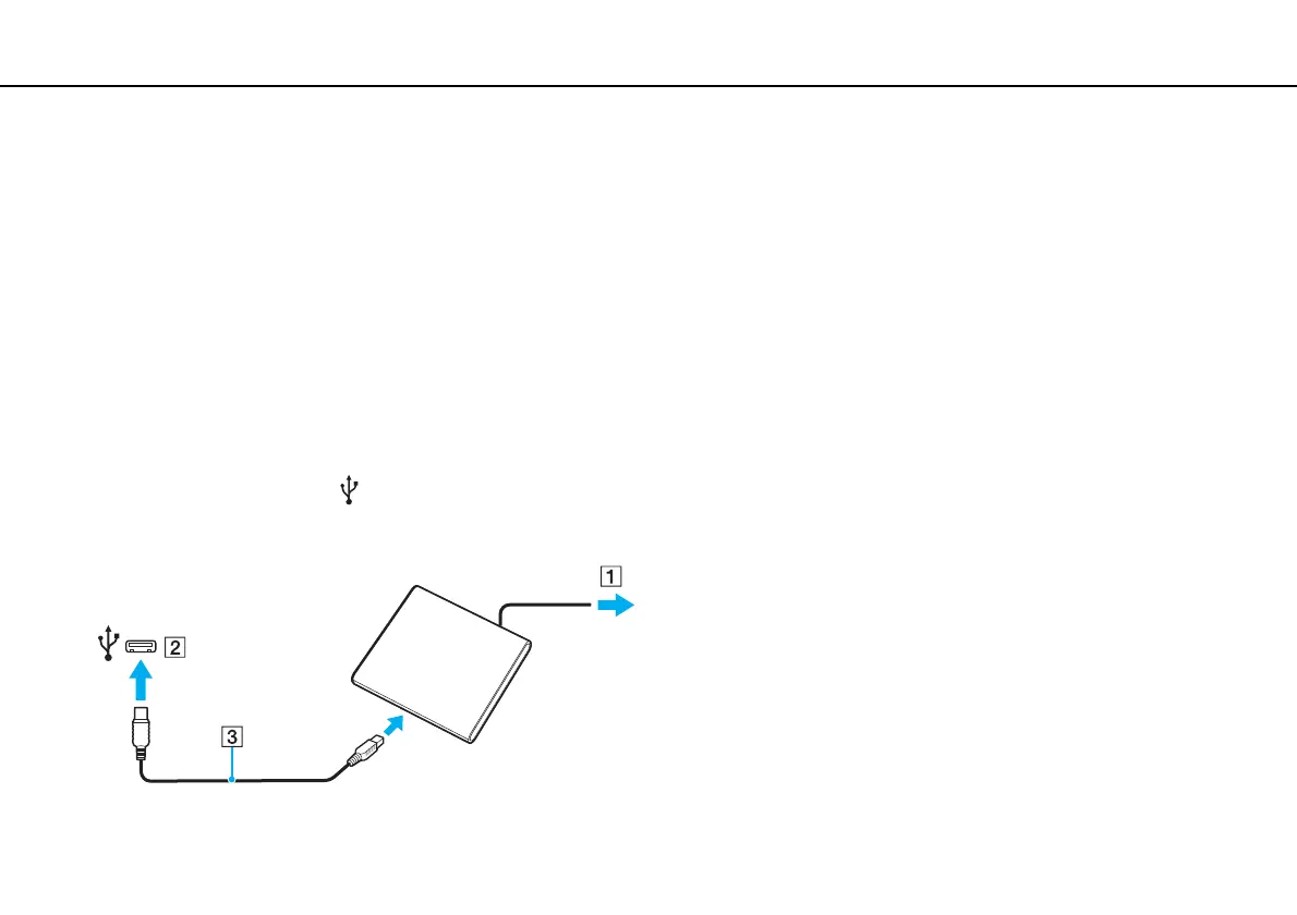 3 Plug one end of a USB cable (3) into the USB port, and the other end to the optical disc drive.