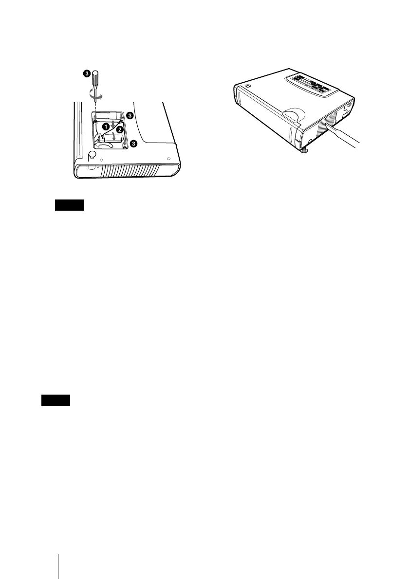 • Be sure to turn off the projector and unplug
