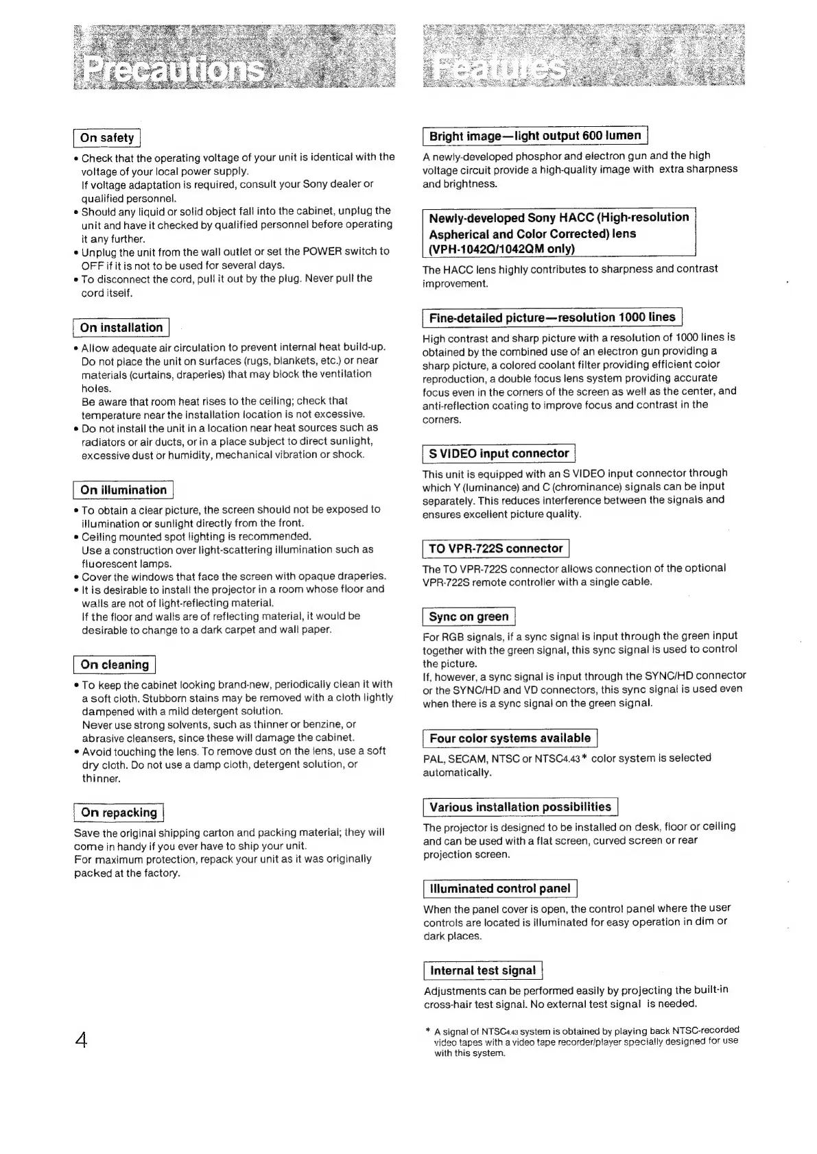 Sony VPH-1041Q - Page 4