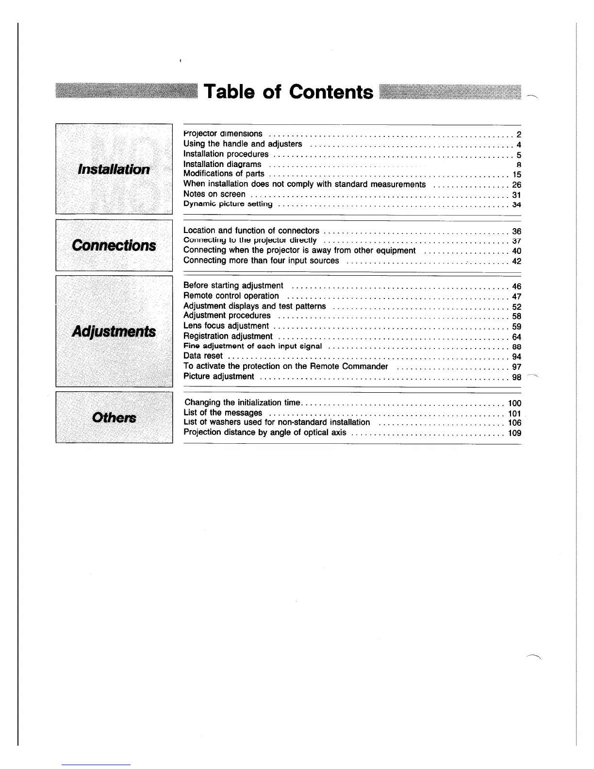 Sony VPH-1272Q - Table of Contents