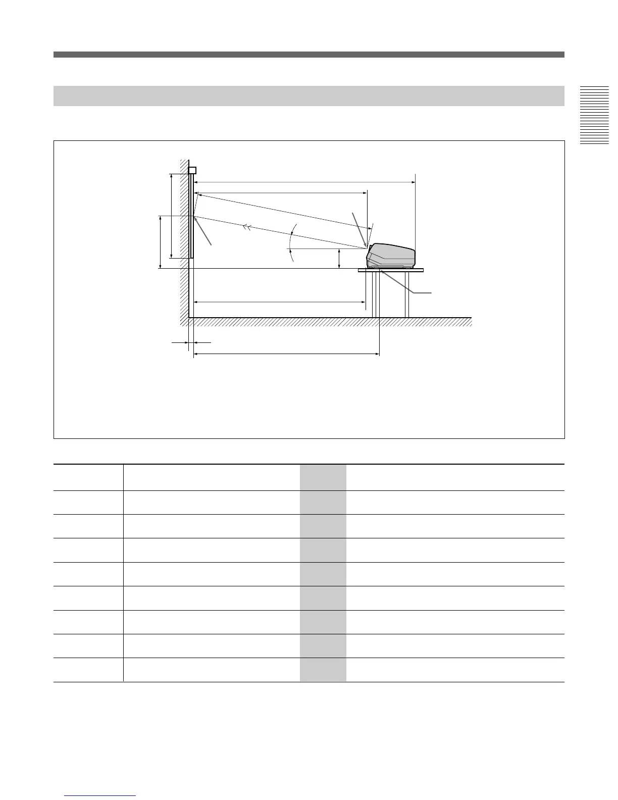 B: Difference in height between the projector’s bottom surface and the center of the screen