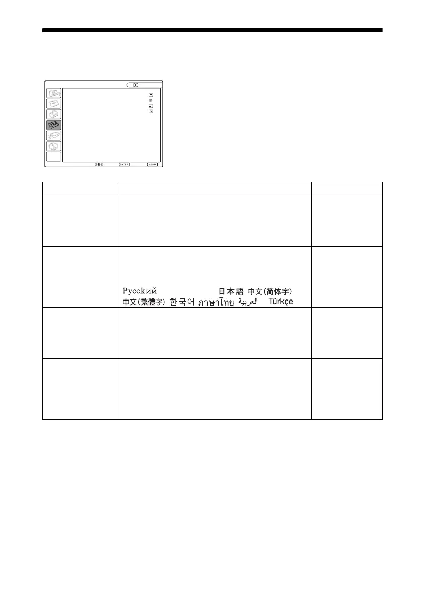 Position de menu Permet de sélectionner la position d’affichage du
