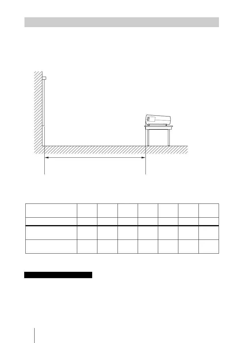 • When “Wide Mode” in the INPUT SETTING menu is set to “16:9”, the projected image size