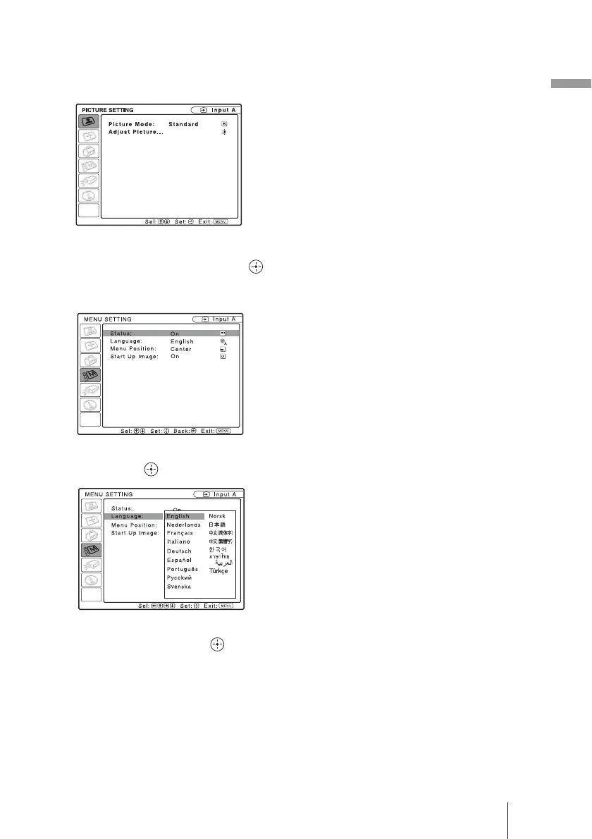 3 Press M/m to select “Language,”