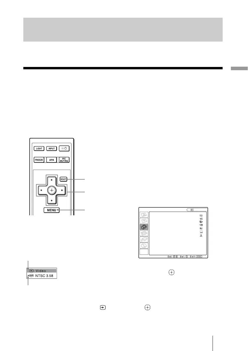 The projector is equipped with an on-screen menu for making various adjustments and