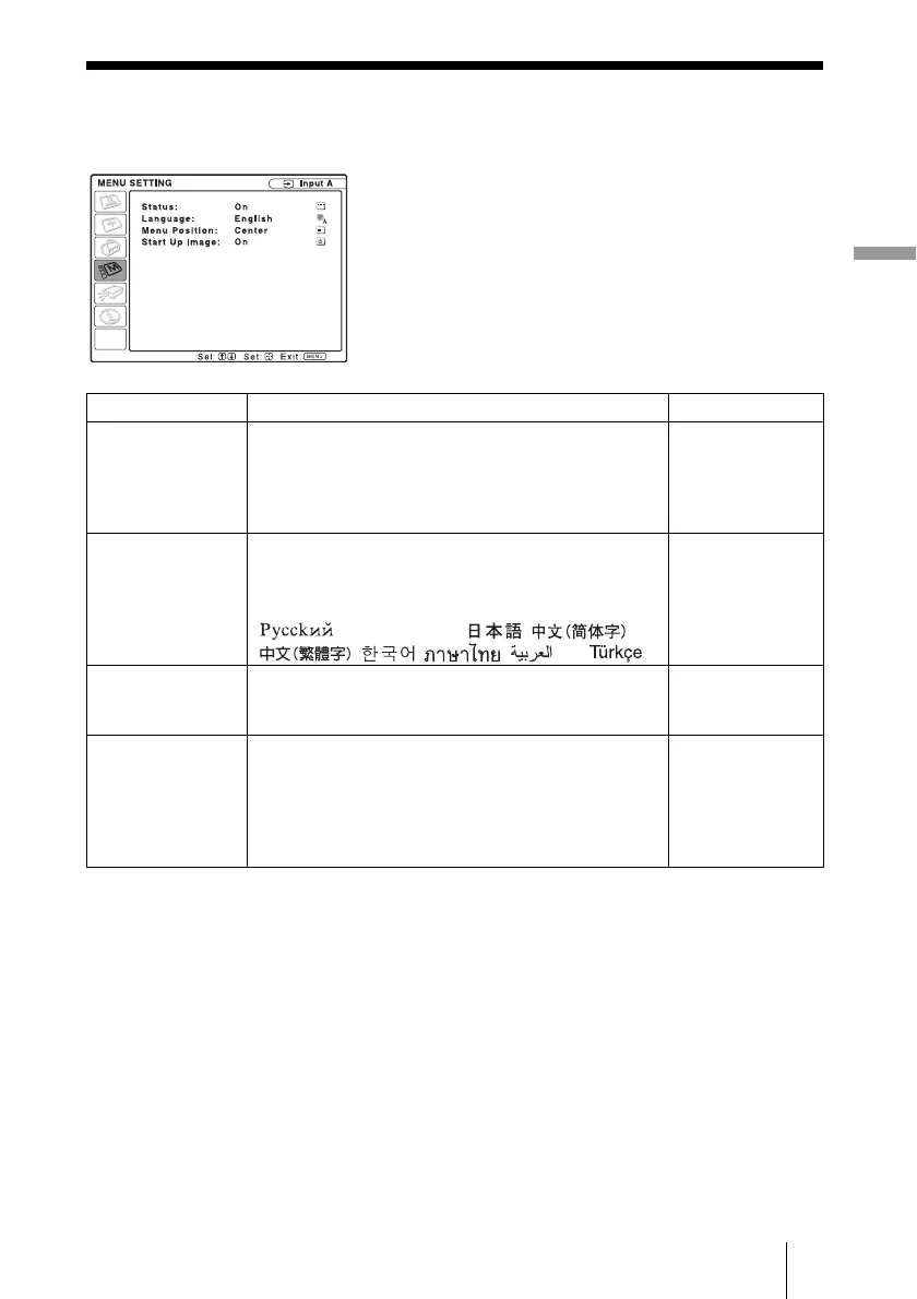 Menu Position Selects the display position of the menu.