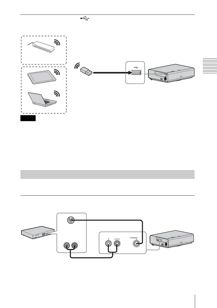 • When wirelessly connecting a tablet PC/smartphone to the projector via USB wireless LAN