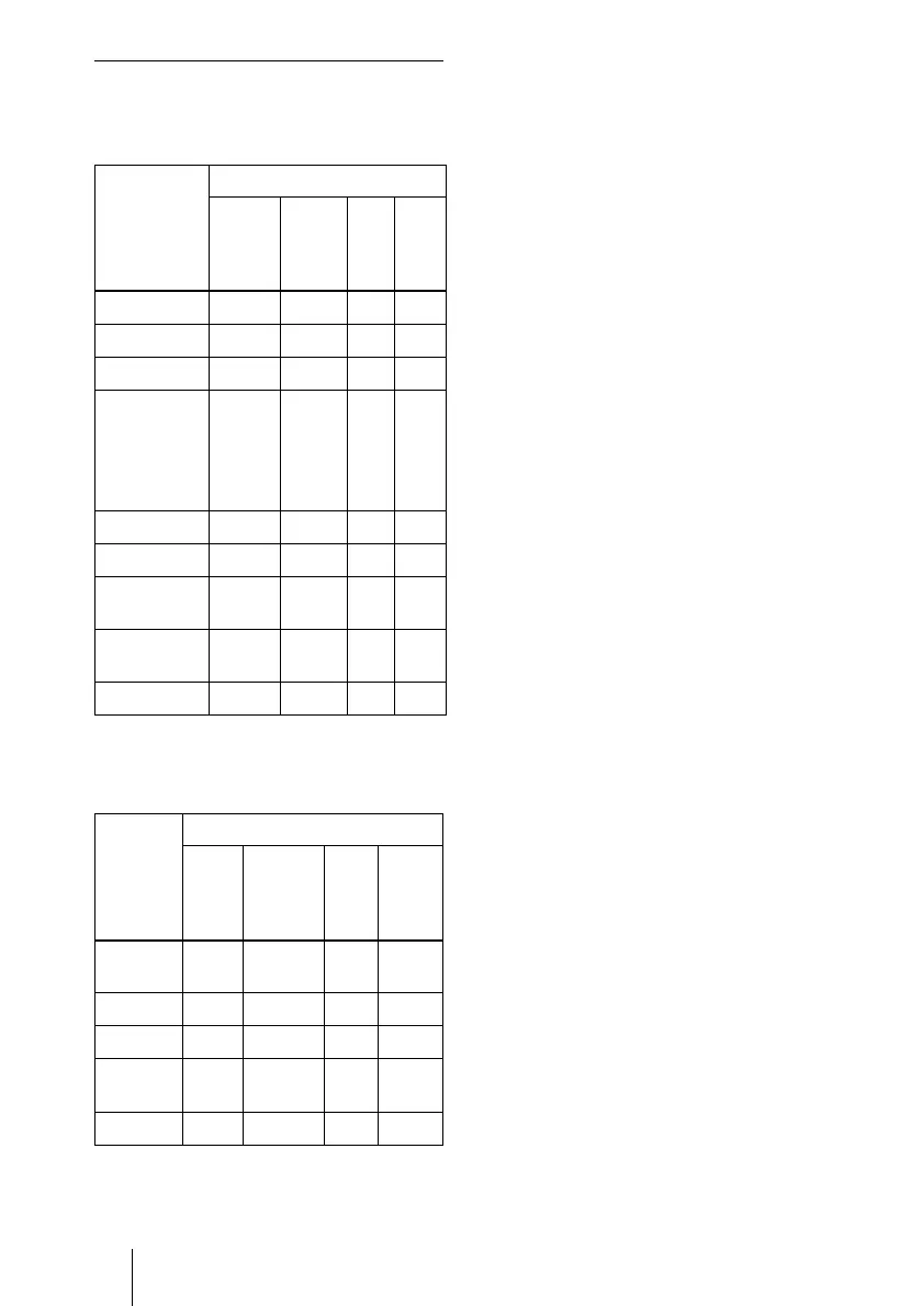 – : Not adjustable/cannot be set
