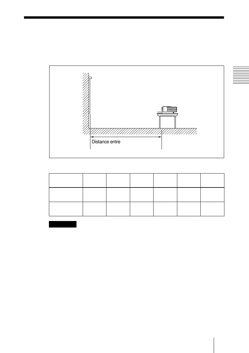 La distance entre l’objectif et l’écran varie suivant la taille de l’écran. Utilisez
