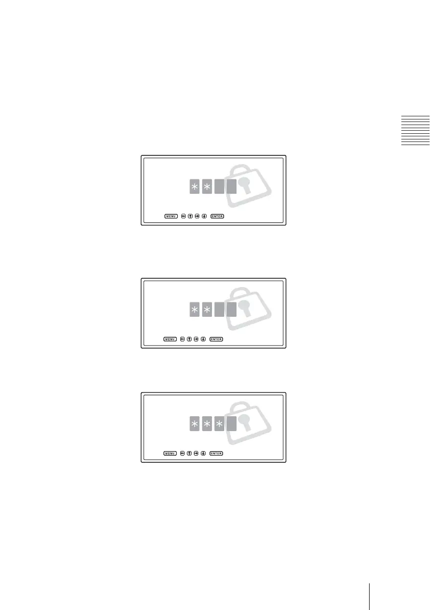 Utilice las teclas MENU, M/m/</, y ENTER para escribir la contraseña de