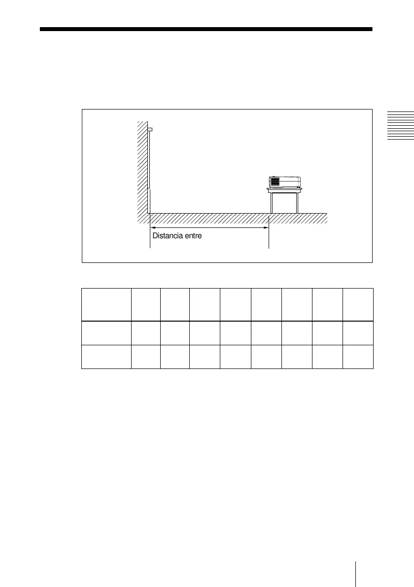 La distancia entre el objetivo y la pantalla varía en función del tamaño de ésta.