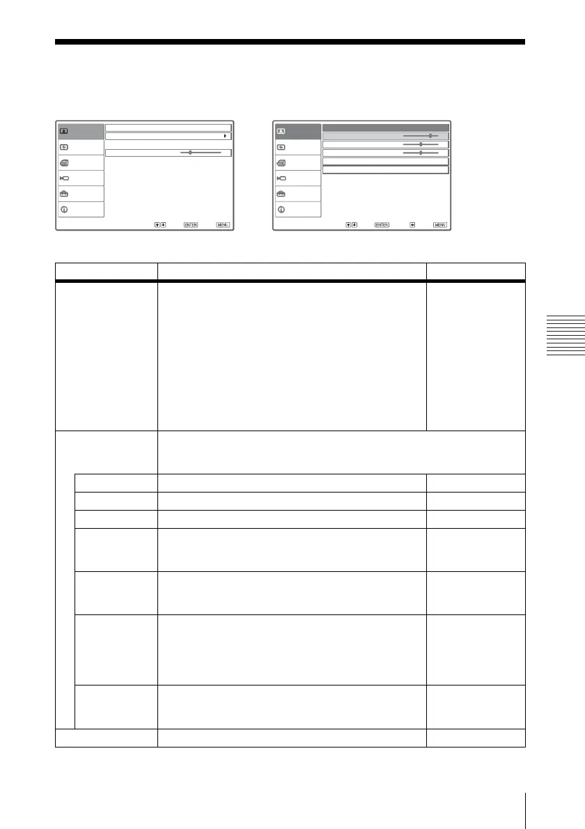 Adjust Picture... The unit can store the setting values of the following sub menu items for