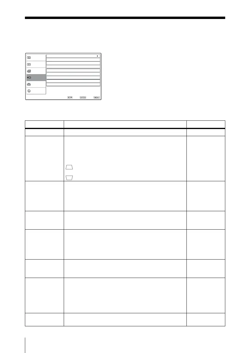 Tilt... Adjusts the position (height) of the projected picture.