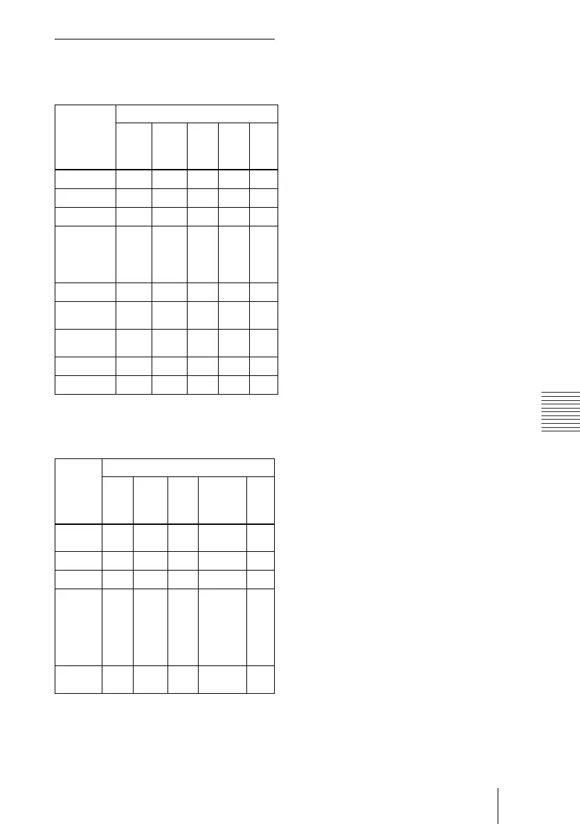 – : Not adjustable/cannot be set