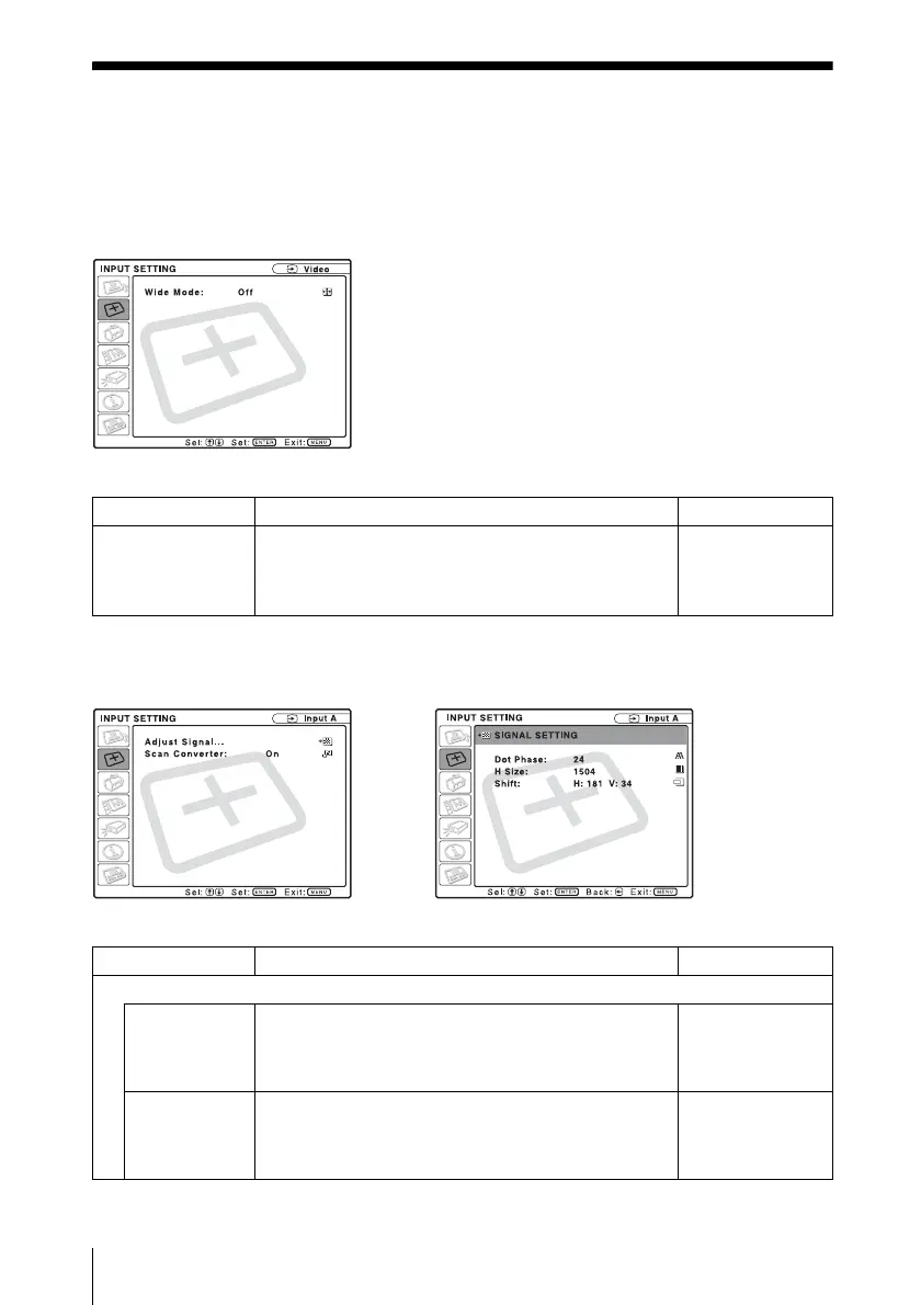 Items that can be adjusted or set depend on the kind of input signals. For details, see “Input