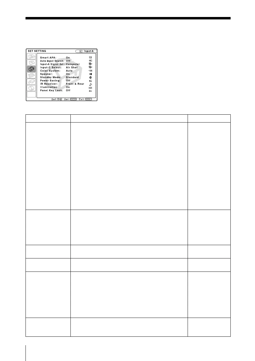 The SET SETTING menu is used for changing the settings of the projector.