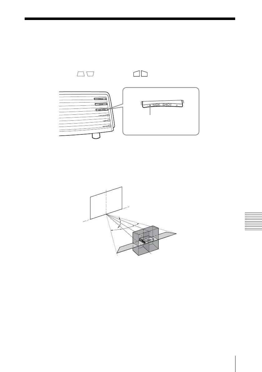 When projecting with “Side Shot” adjustment only, you can adjust the horizontal distortion of