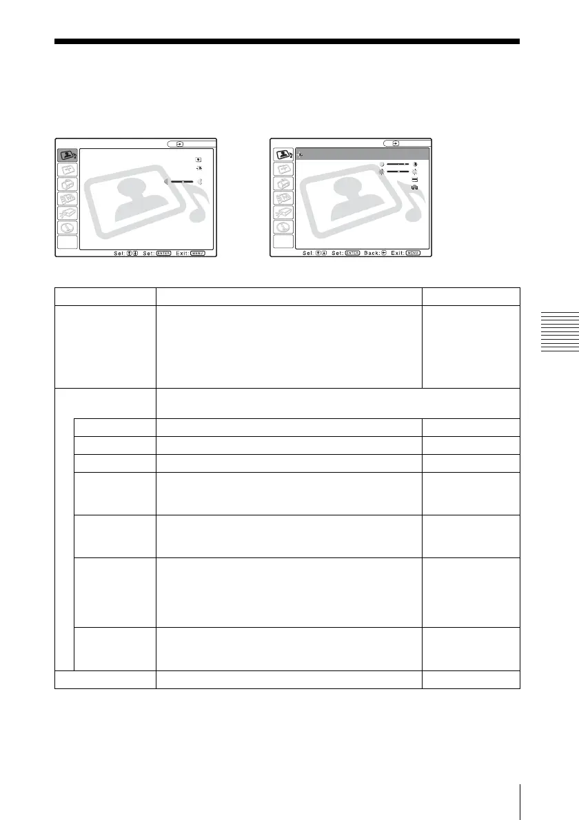 Items that can be adjusted or set depend on the kind of input signals. For details, see “Input