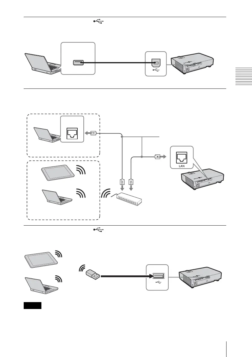 For connecting to a computer with a USB connector (“Playing Video and Audio using USB