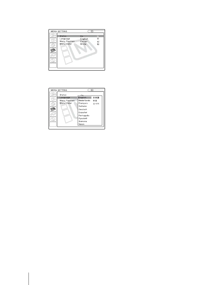 5 Appuyez sur la touche v ou V pour sélectionner « Language », puis
