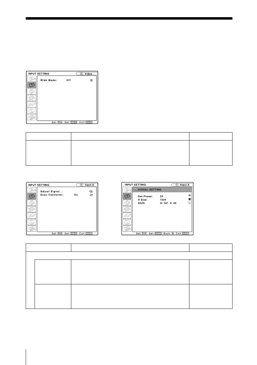 Items that can be adjusted or set depend on the kind of input signals. For details, see “Input