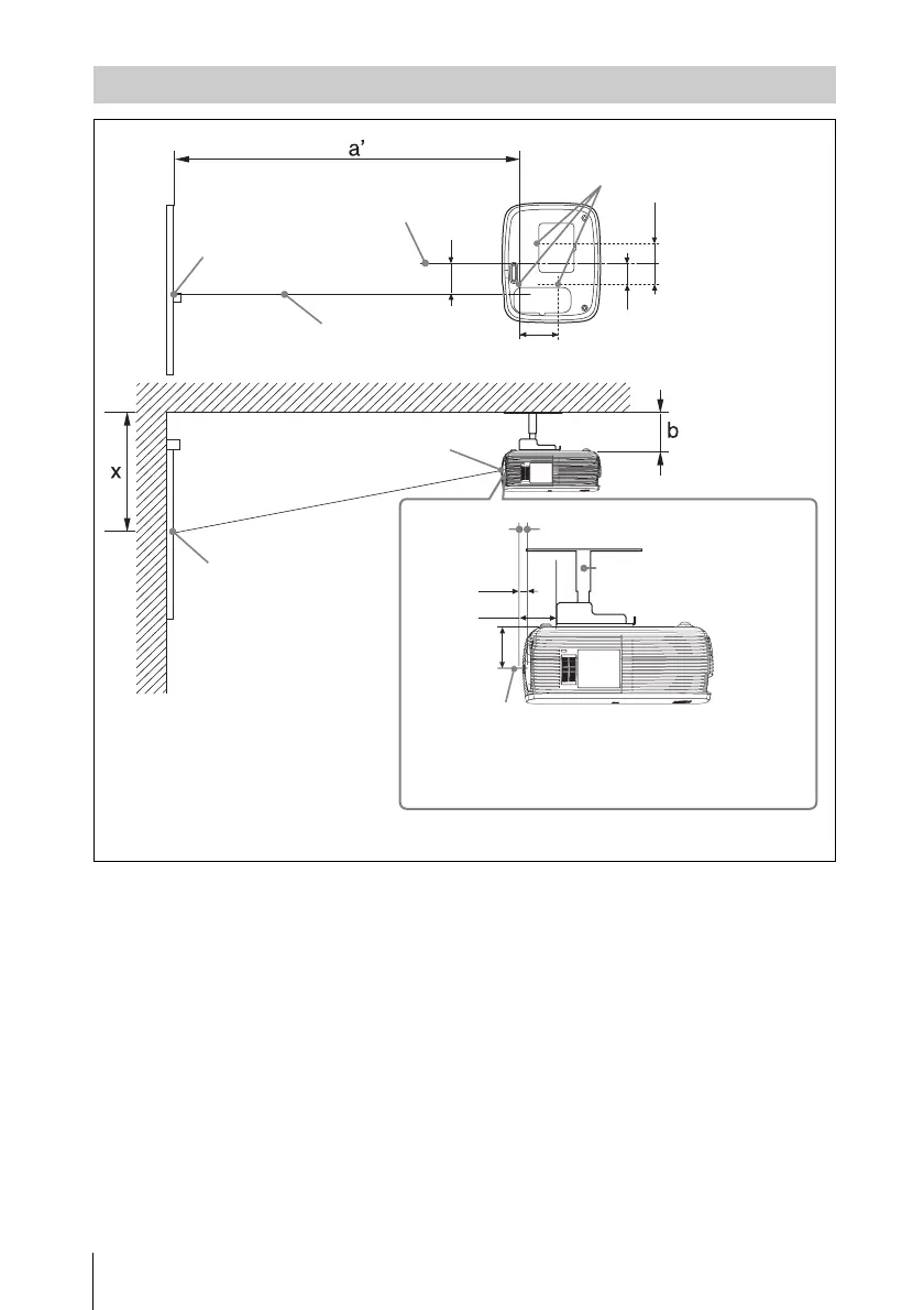 a’: distance between the hole (front) for mounting a projector suspension support on bottom