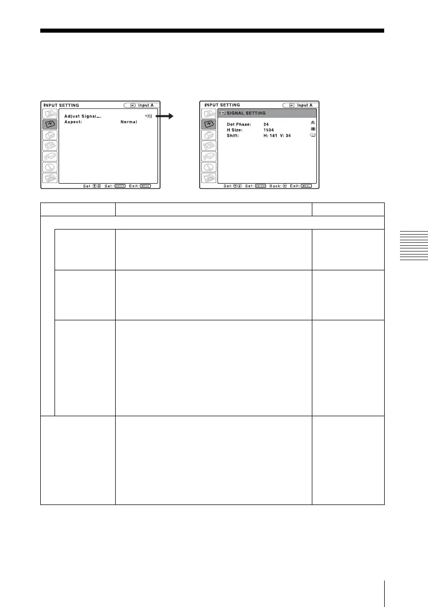 Dot Phase Adjusts the dot phase of the LCD panel and the signal
