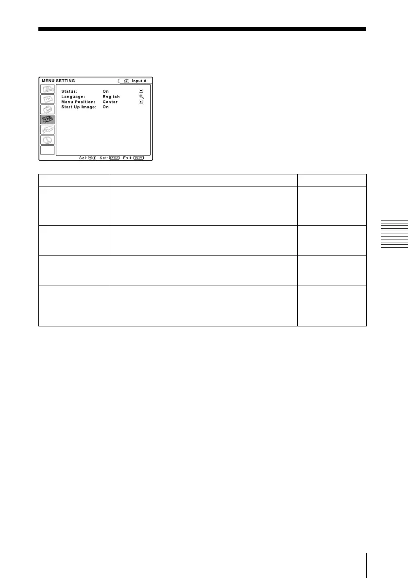The MENU SETTING menu is used for changing the menu displays.