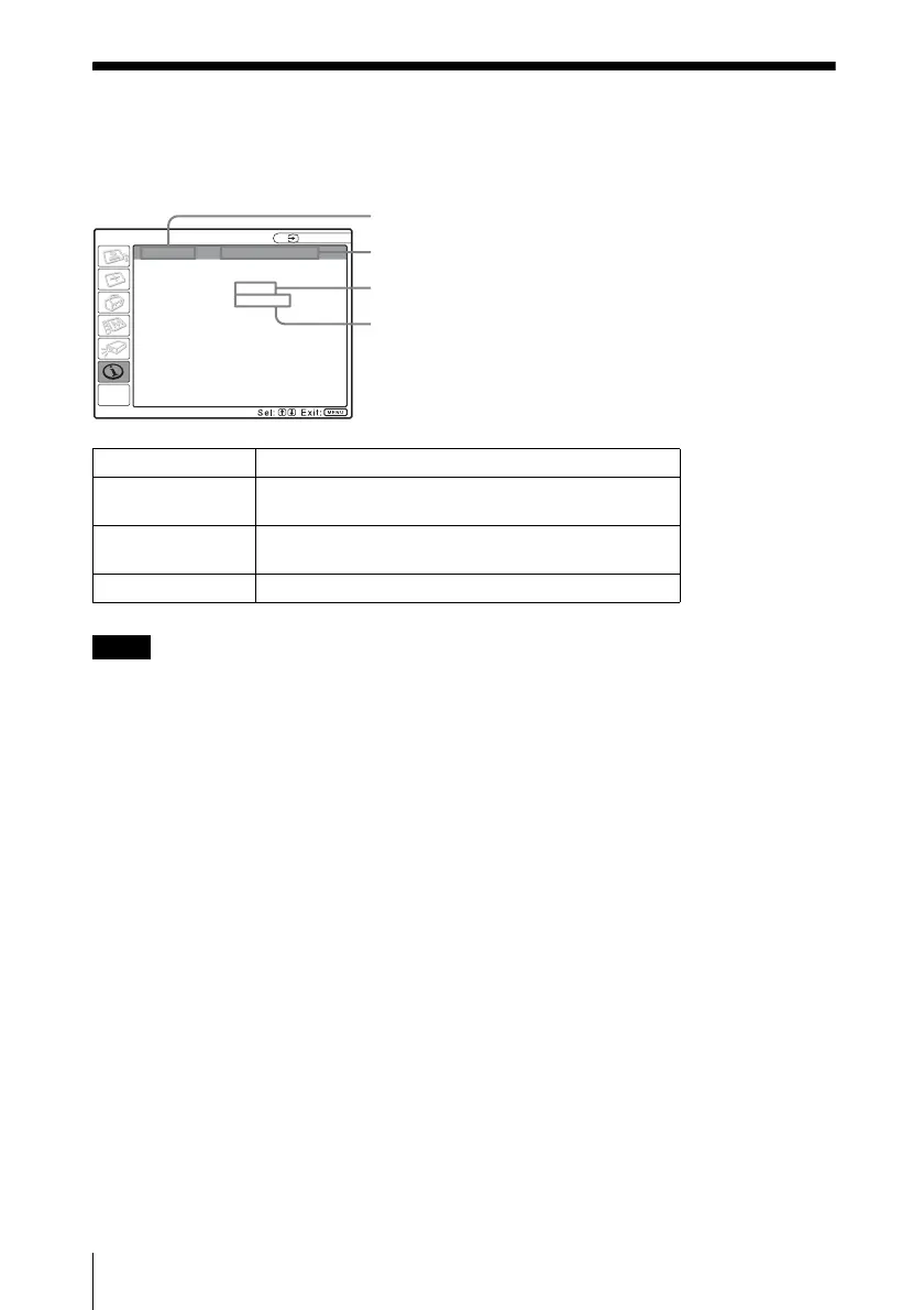 fH Displays the horizontal frequency of the input signal.
