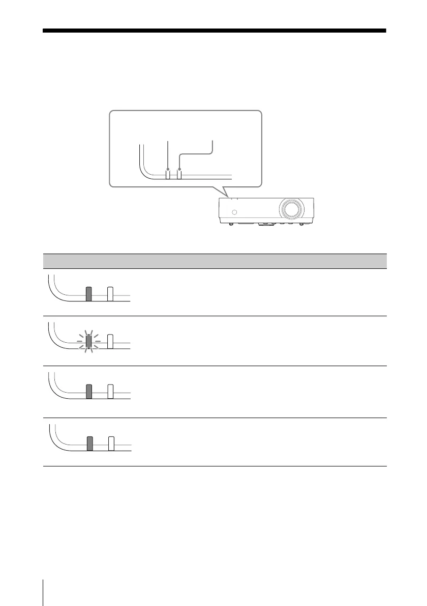 You can check the projector status or abnormality by checking the lighting/flashing status of
