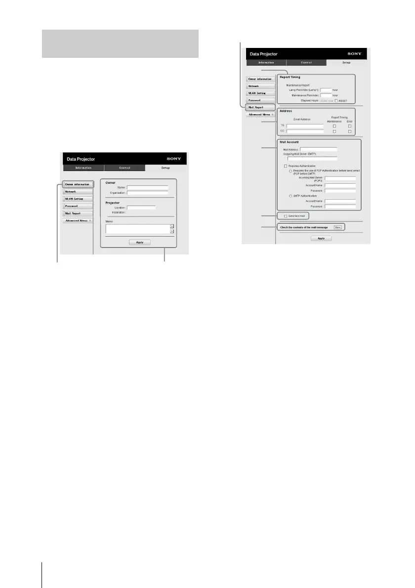 Set the e-mail report function on the Setup