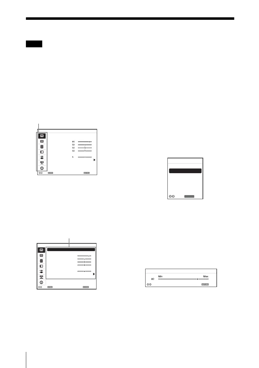 setting items, press the B or RETURN