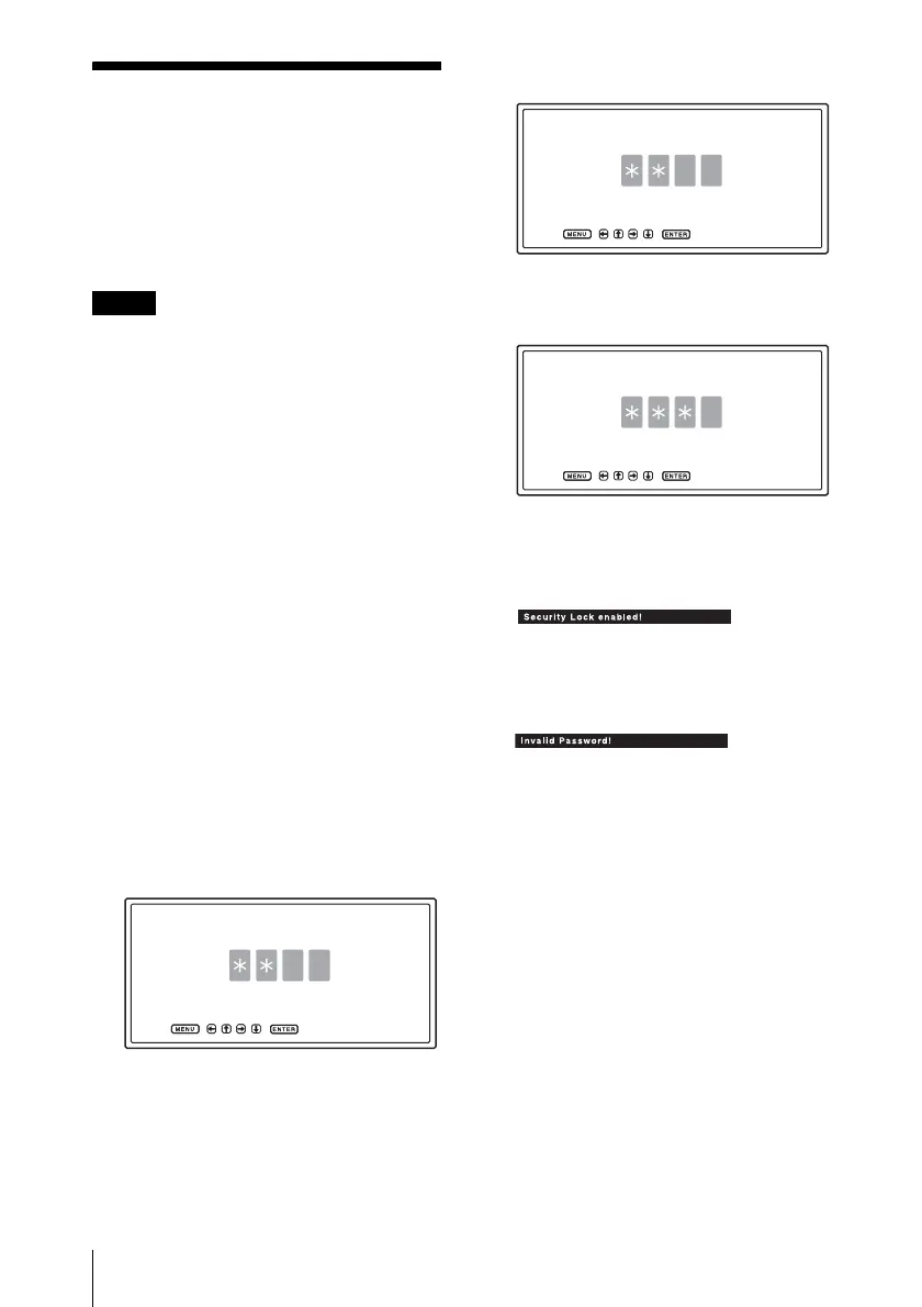 displayed, the setting for security lock is