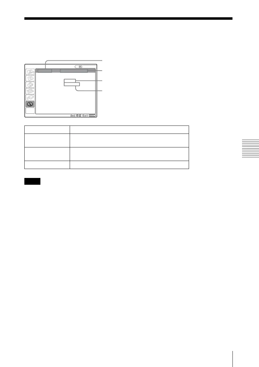 fH Displays the horizontal frequency of the input signal.