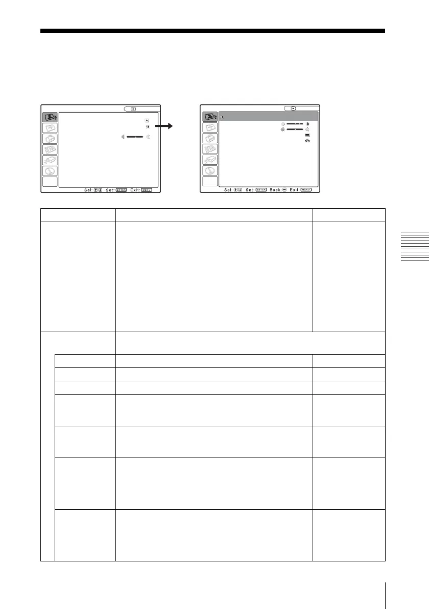 Adjust Picture... The unit can store the setting values of the following sub menu items for