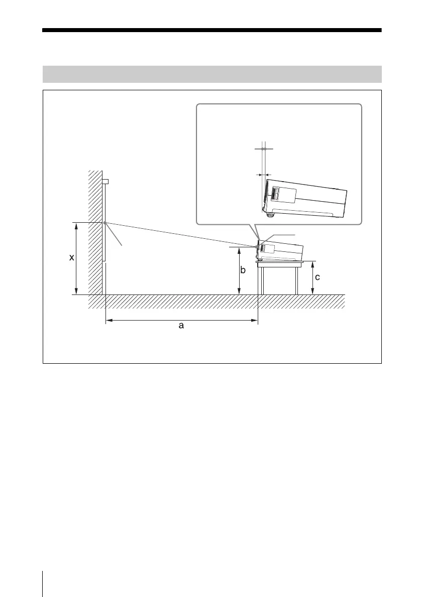 c: distance between the floor and the bottom of the adjusters of the projector