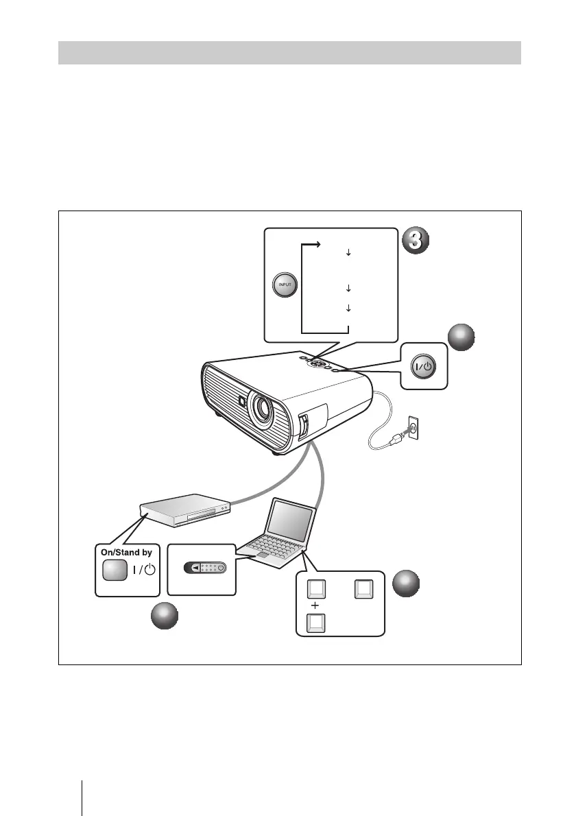 b Accendere l’apparecchiatura collegata al proiettore.