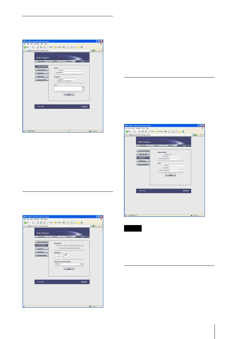 of the projector, owner information, etc.