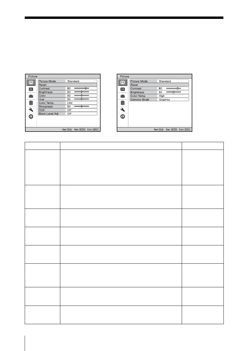 Temp,” “Sharpness,” “DDE,” “Black Level Adj.,” and