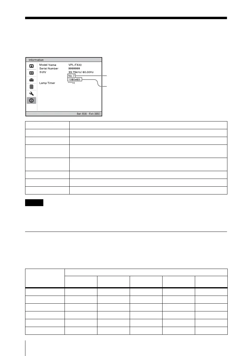 • fH (horizontal frequency) and fV(vertical frequency) may not be displayed depending