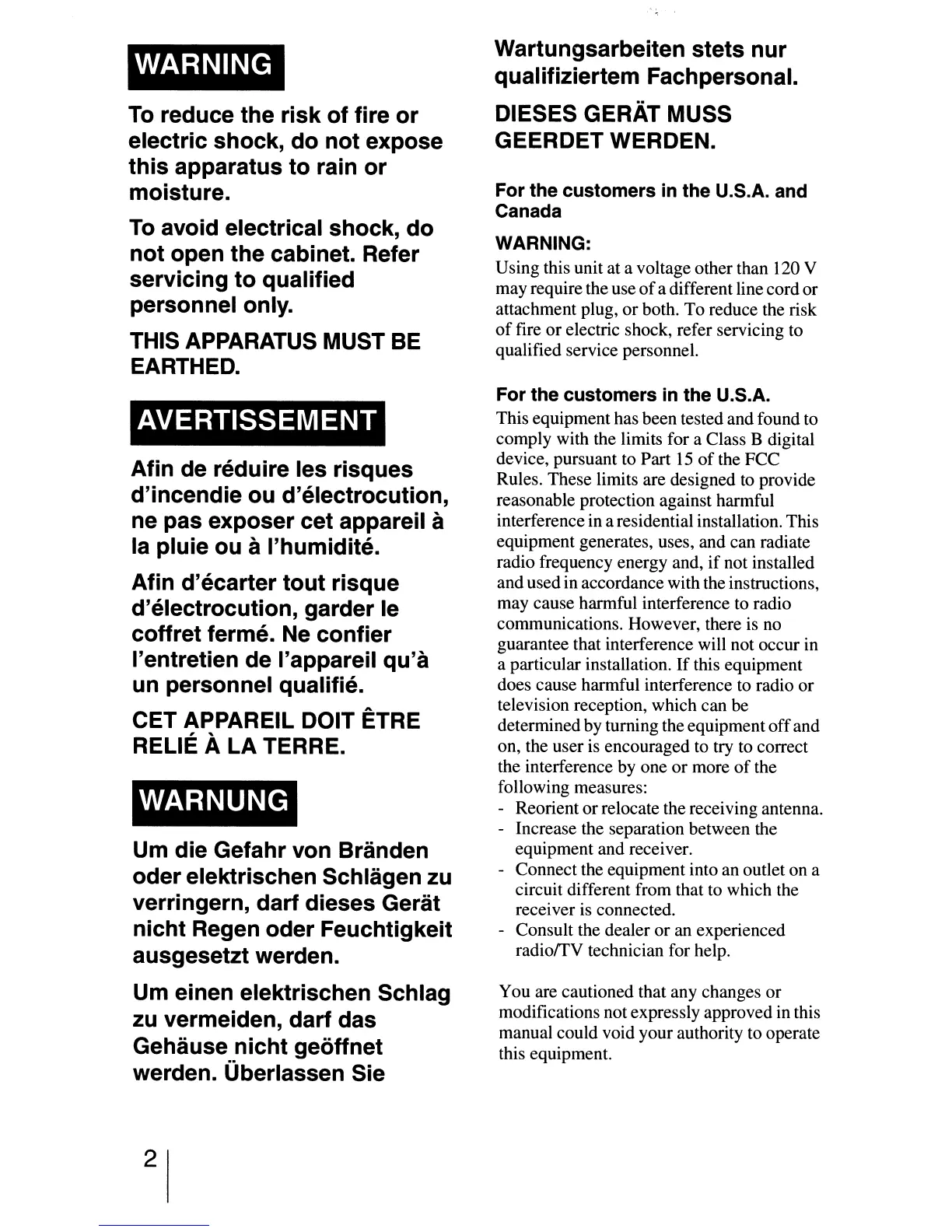 electric shock, refer servicing to